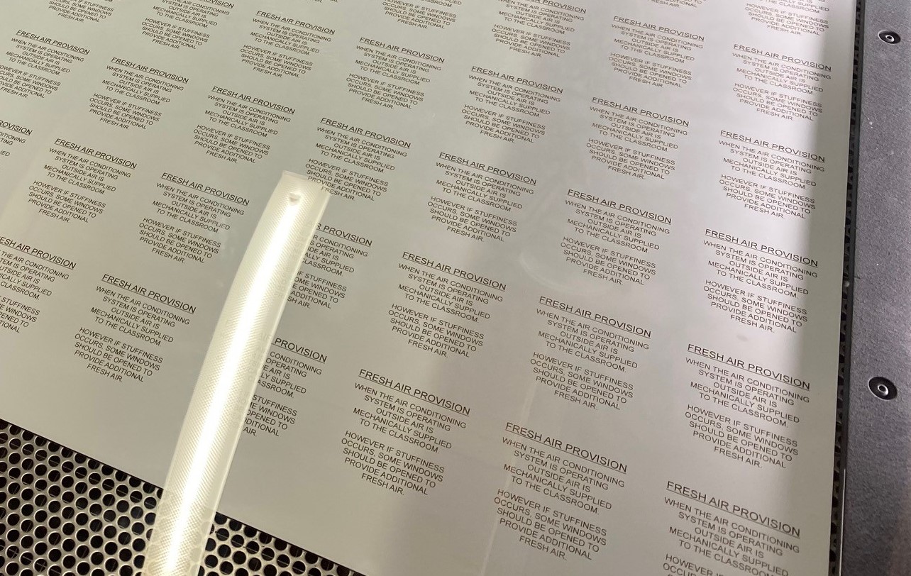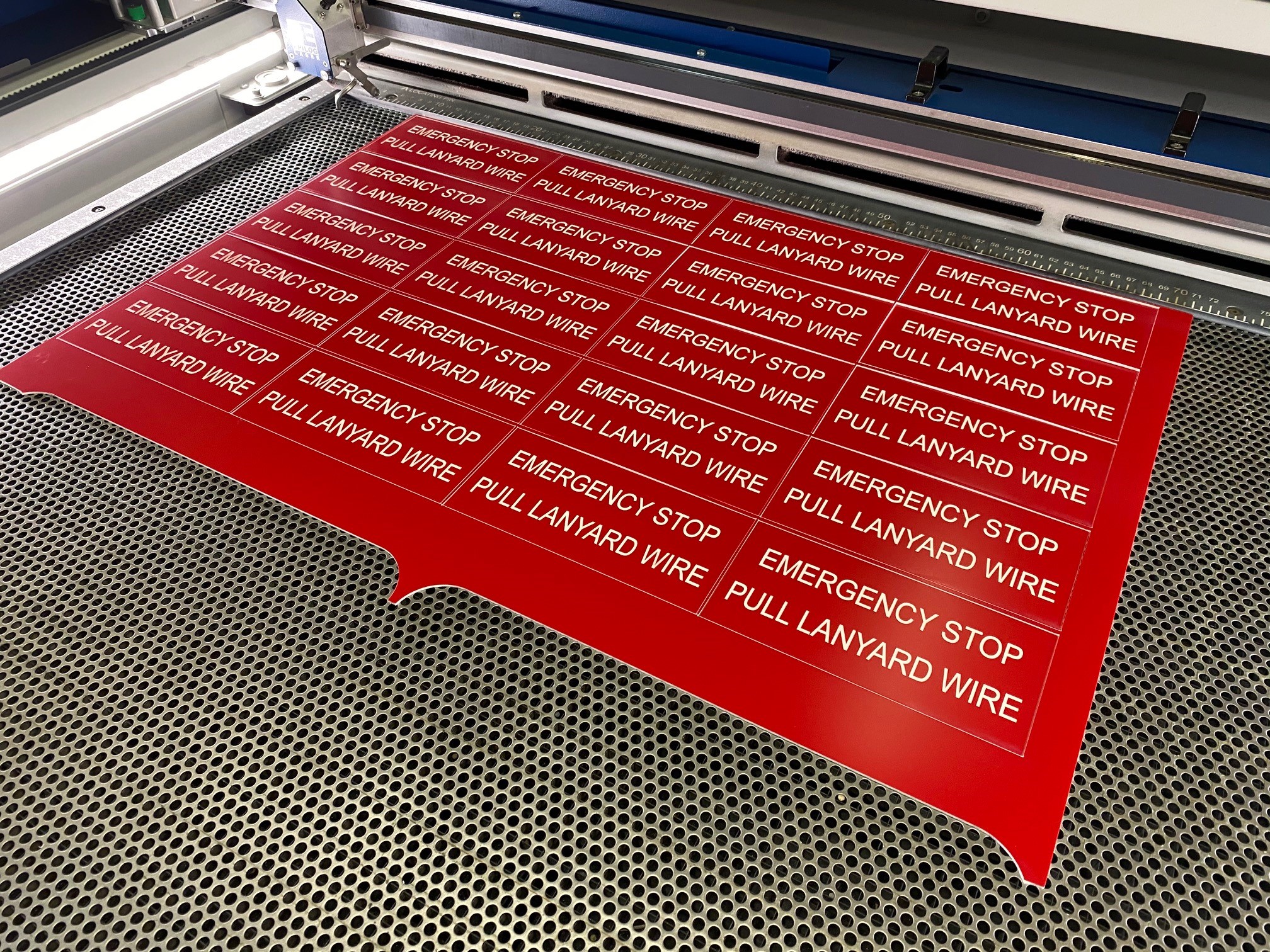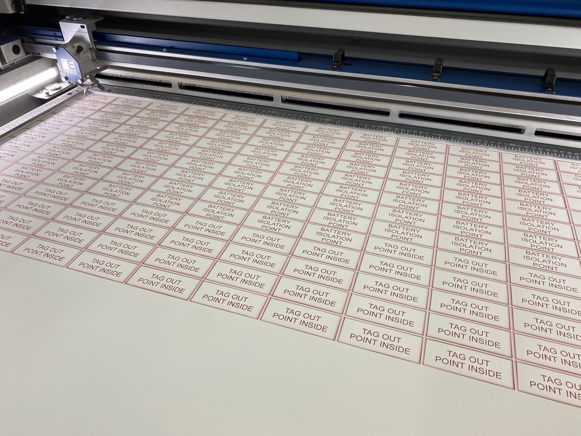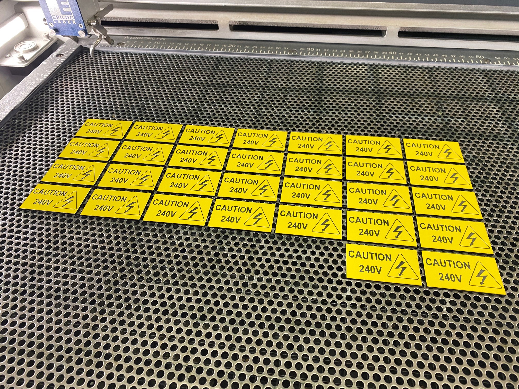 All our electrical engraving labels come with quality 3M brand self-adhesive which features 100% coverage to the back of the label for optimum adhesion. Mounting holes for mechanical fixings can also be laser cut to suit the needs of our clients such as mining, defence, schools and government works.